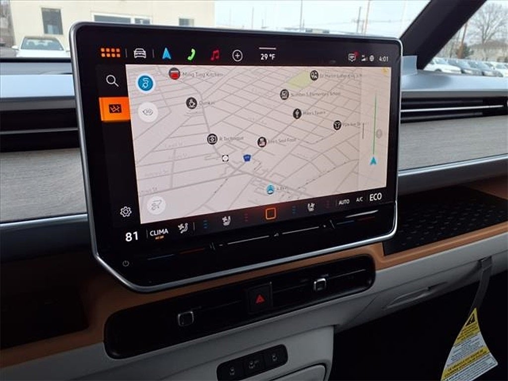 - Radio: Discover Pro Max w/Touchscreen Navigation -inc: 12.9 inch touchscreen multi-function center display w/backlit sliders, FM/HD Radio, WMA/MP3/FLAC media player w/voice control, Harman Kardon premium sound system w/13 speakers, subwoofer and amplifier, Bluetooth® connectivity (for compatible devices), SiriusXM w/360L (w/3-month free trial subscription; must accept SiriusXM terms), App-Connect smartphone integration (w/Apple CarPlay, Android Auto and MirrorLink) via USB, wireless App-Connect smartphone integration (for compatible devices) w/multi-phone pairing capability, capability for in-vehicle 4G LTE enabled Wi-Fi (cellular data plan required; includes limited trial), capability for VW Car-Net services (capabilities for certain services vary; requires enrollment or subscription) and Qi wireless inductive charger (for compatible mobile phones and accessories) in front row