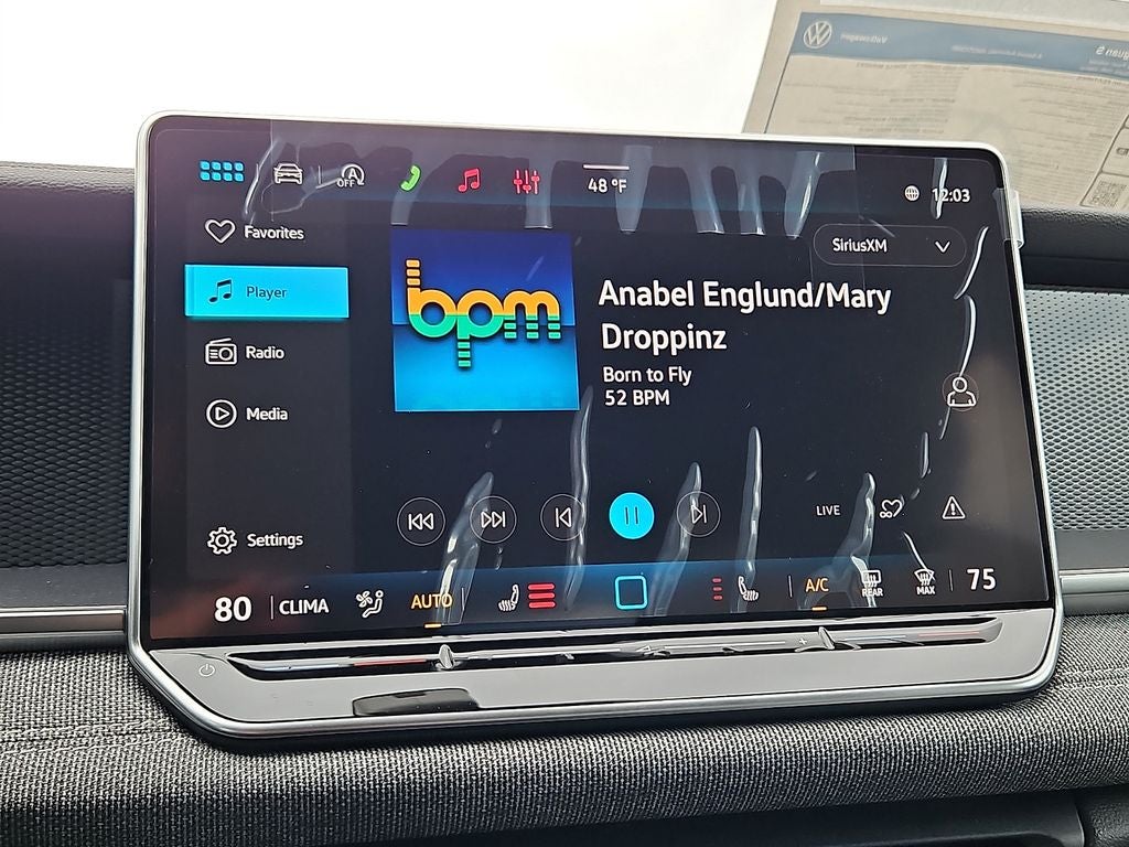 - MIB4 Composition Media Touchscreen w/AM/FM Radio -inc: WMA/MP3/FLAC player w/USB, 12.9" touchscreen multi-function center display w/backlit sliders, voice control, 6 speakers + center speaker (7 speakers total) sound system, capability for in-vehicle 4G LTE enabled Wi-Fi (cellular data plan required; includes limited trial), capability for connected vehicle services (capabilities for services vary; requires enrollment or subscription), Bluetooth® connectivity (for compatible devices), SiriusXM w/360L (w/3-month free trial subscription; 360L services require acceptance of Car-Net terms), App-Connect smartphone integration (w/Apple CarPlay, Android Auto and MirrorLink) via USB, wireless App-Connect smartphone integration (for compatible devices) w/multi-phone pairing capability, 45W fast charging (for compatible mobile phones and accessories) via USB in both rows and Qi wireless inductive charger, cooled, up to 15W (for compatible mobile phones and accessories) All connected vehicle services are subject to terms and limitations. Some services require a paid subscription. See dealer or vw.com/connected for important details.