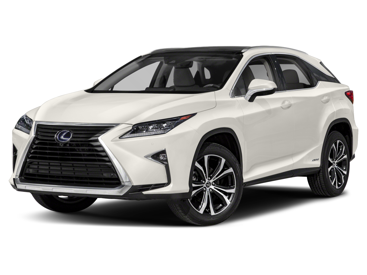 Ultra White 2019 Lexus RX 450h AWD eCVT 3.5L V6 DOHC VVT-i 24V RX 450h, 4D Sport Utility, 3.5L V6 DOHC VVT-i 24V, eCVT, AWD, Ultra White, Black w/Leather Seat Trim, 3.54 Axle Ratio, 4-Wheel Disc Brakes, 9 Speakers, ABS brakes, Air Conditioning, Alloy wheels, AM/FM radio: SiriusXM, AM/FM/CD Radio, Anti-whiplash front head restraints, Auto High-beam Headlights, Auto tilt-away steering wheel, Auto-dimming door mirrors, Auto-dimming Rear-View mirror, Automatic temperature control, Brake assist, Bumpers: body-color, CD player, Delay-off headlights, Driver door bin, Driver vanity mirror, Dual front impact airbags, Dual front side impact airbags, Electronic Stability Control, Emergency communication system: Lexus Enform w/Safety Connect, Exterior Parking Camera Rear, Four wheel independent suspension, Front anti-roll bar, Front Bucket Seats, Front Center Armrest, Front dual zone A/C, Front fog lights, Front reading lights, Fully automatic headlights, Garage door transmitter: HomeLink, Genuine wood console insert, Genuine wood door panel insert, Heated door mirrors, Heated steering wheel, Illuminated entry, Knee airbag, Leather Shift Knob, Leather steering wheel, Lexus Enform App Suite 2.0, Lexus Enform Wi-Fi, Low tire pressure warning, NuLuxe Seat Trim, Occupant sensing airbag, Outside temperature display, Overhead airbag, Overhead console, Panic alarm, Passenger door bin, Passenger vanity mirror, Power door mirrors, Power driver seat, Power Liftgate, Power passenger seat, Power steering, Power windows, Radio data system, Rain sensing wipers, Rear anti-roll bar, Rear reading lights, Rear seat center armrest, Rear side impact airbag, Rear window defroster, Rear window wiper, Remote keyless entry, Security system, Speed control, Speed-sensing steering, Split folding rear seat, Spoiler, Steering wheel mounted audio controls, Telescoping steering wheel, Tilt steering wheel, Traction control, Trip computer, Turn signal indicator mirrors, Variably intermittent wipers, Wheels: 18 x 7.5 7-Spoke Aluminum.