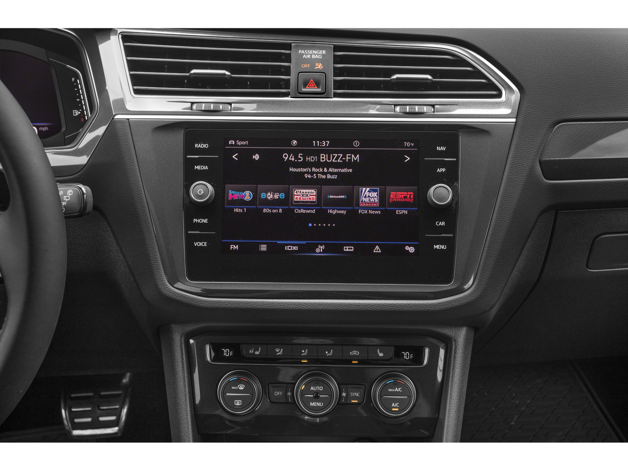 - Radio: Discover Media AM/FM/HD -inc: 8" touchscreen navigation, dual USB input, voice control, Fender premium audio system w/subwoofer, VW App-Connect smartphone integration and interface w/Apple CarPlay, Android Auto and MirrorLink, capability for in-vehicle 4G LTE enabled Wi-Fi (cellular data plan required; includes limited trial), capability for VW Car-Net services (capabilities for certain services vary; requires enrollment or subscription), Bluetooth® connectivity (for compatible devices), SiriusXM satellite radio w/limited-time trial subscription and USB charging-only port facing 2nd row seat