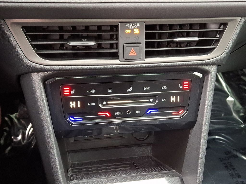 Certified. Deep Black Pearl 2025 Volkswagen Taos 1.5T SE Black AWD 8-Speed Automatic with Tiptronic 1.5L I4 Turbocharged DOHC 16V LEV3-SULEV30 174hp Taos 1.5T SE Black, 4D Sport Utility, 1.5L I4 Turbocharged DOHC 16V LEV3-SULEV30 174hp, 8-Speed Automatic with Tiptronic, AWD, Deep Black Pearl, Black w/Cloudtex and Cloth Seating Surfaces, 4-Wheel Disc Brakes, 6 Speakers, ABS brakes, Active Blind Spot Monitor, Air Conditioning, Alloy wheels, AM/FM radio: SiriusXM with 360L, Auto High-beam Headlights, Automatic temperature control, Brake assist, Bumpers: body-color, CloudTex & Cloth Seating Surfaces, Compass, Delay-off headlights, Driver door bin, Driver vanity mirror, Dual front impact airbags, Dual front side impact airbags, Electronic Stability Control, Emergency communication system: VW Car-Net Safe & Secure 5-year, Exterior Parking Camera Rear, Four wheel independent suspension, Front anti-roll bar, Front Bucket Seats, Front Center Armrest, Front dual zone A/C, Front reading lights, Front Strut Rear Multi-Link Suspension, Fully automatic headlights, Heated door mirrors, Heated Front Bucket Seats, Heated front seats, Heated steering wheel, Illuminated entry, Leather Shift Knob, Low tire pressure warning, Occupant sensing airbag, Outside temperature display, Overhead airbag, Overhead console, Panic alarm, Passenger door bin, Passenger vanity mirror, Power door mirrors, Power driver seat, Power moonroof, Power steering, Power windows, Radio data system, Radio: MIB3 Composition Media AM/FM/HD, Rain sensing wipers, Rear anti-roll bar, Rear seat center armrest, Rear window defroster, Rear window wiper, Remote keyless entry, Rubber Mats Kit, Security system, Speed control, Speed-sensing steering, Split folding rear seat, Spoiler, Steering wheel mounted audio controls, Tachometer, Telescoping steering wheel, Tilt steering wheel, Traction control, Trip computer, Variably intermittent wipers, Wheels: 19 Black Painted Alloy.